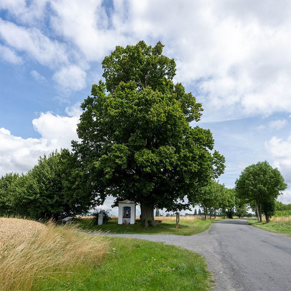 Lípa na Kněžství, která je mezi deseti finalisty soutěže Strom roku, 29. července 2025, Sebranice, Svitavsko.