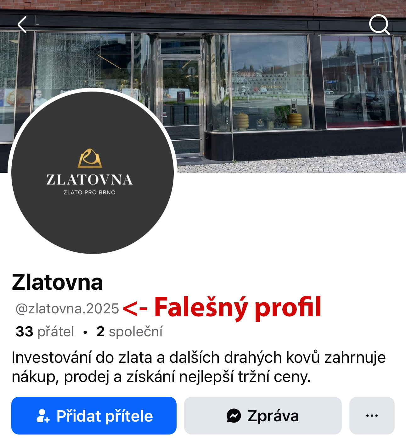 Podvodníci se snaží využít zájmu veřejnosti o investiční zlato a důvěry ve známeho prodejce.